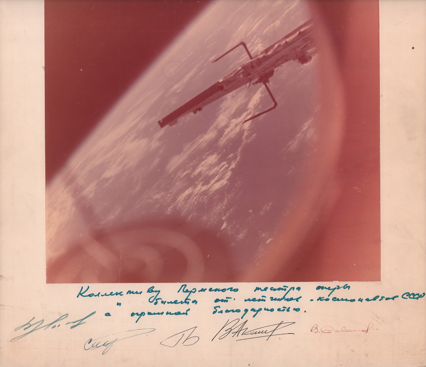 В музее театра хранится весьма любопытная «космическая» фотография с дарственной надписью и автографами пяти советских космонавтов Валентина Лебедева, Геннадия Стрекалова, Георгия Гречко, Владимира Аксенова и Виктора Савиных (соответственно порядку расположения подписей на паспарту). Остается загадкой, когда и при каких обстоятельствах это фото было подарено коллективу Пермского театра оперы и балета. В Перми в разные годы бывали и Георгий Гречко, и Виктор Савиных, и Геннадий Стрекалов. Кто же из них, когда и в связи с чем вручил театру это фото, остается пока невыясненным.