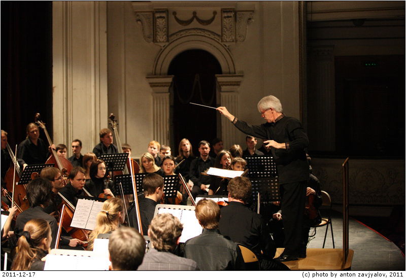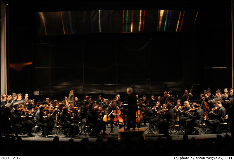 The principle guest conductor of the theatre Olivier Cuendet (Switzerland) together with MusicAeterna presented a concert of Viennese music. With combination of Mozart, a representative of the Viennese Classic school, and Webern, an apologist of the New Viennese school, maestro Cuendet proved the proximity of the two composers separated in place and time by 150 years of history. Photo by Anton Zavialov