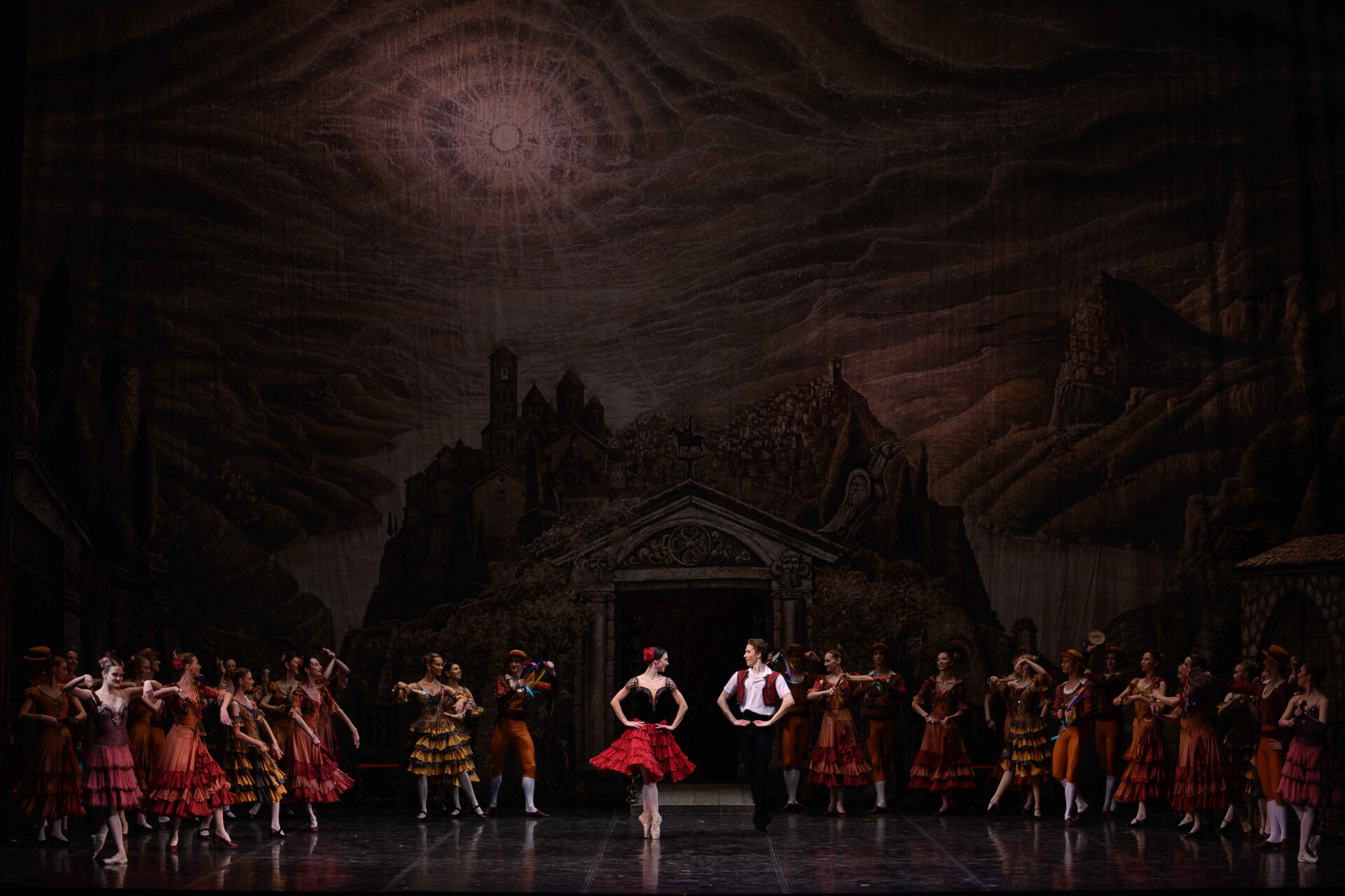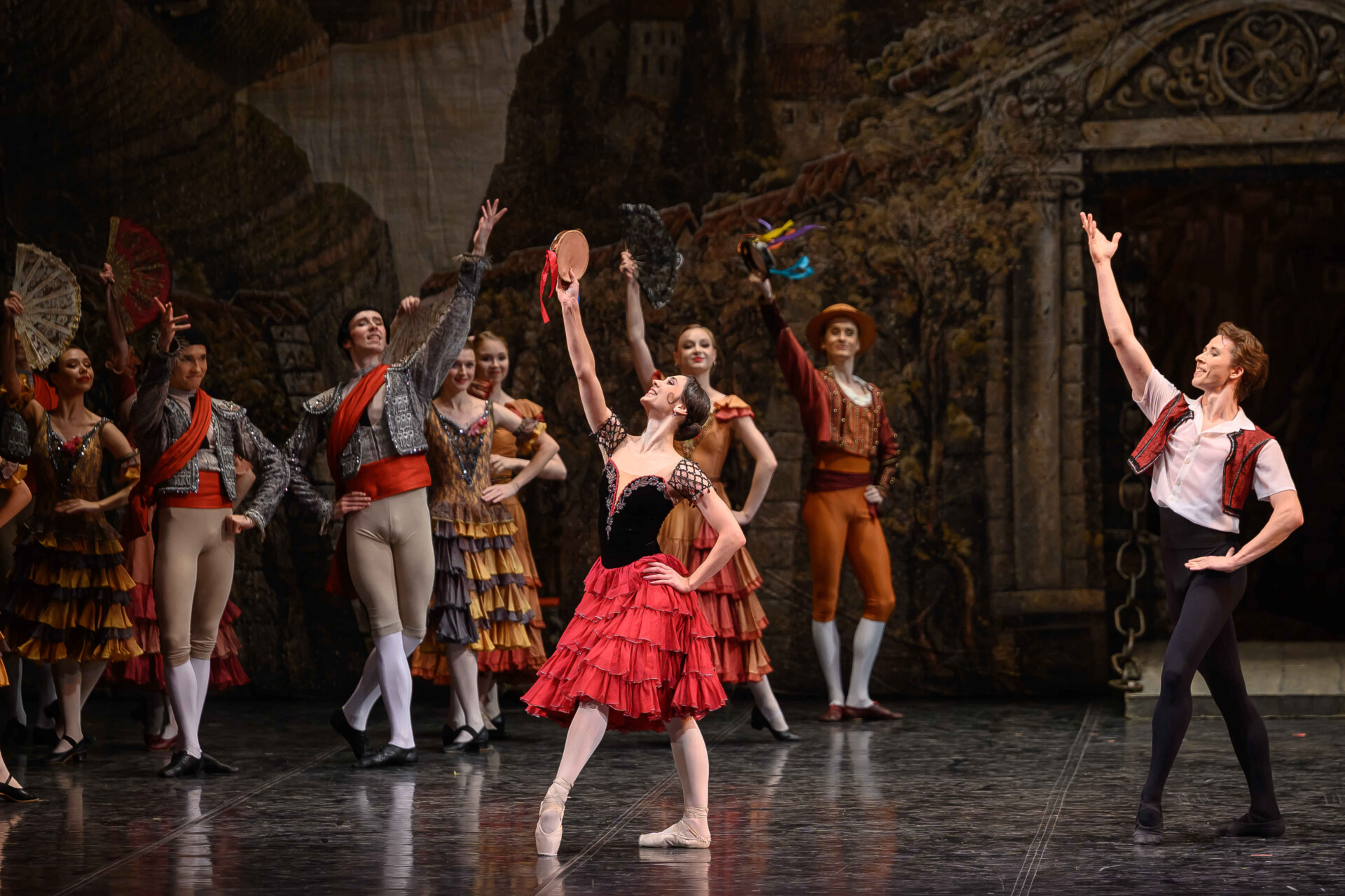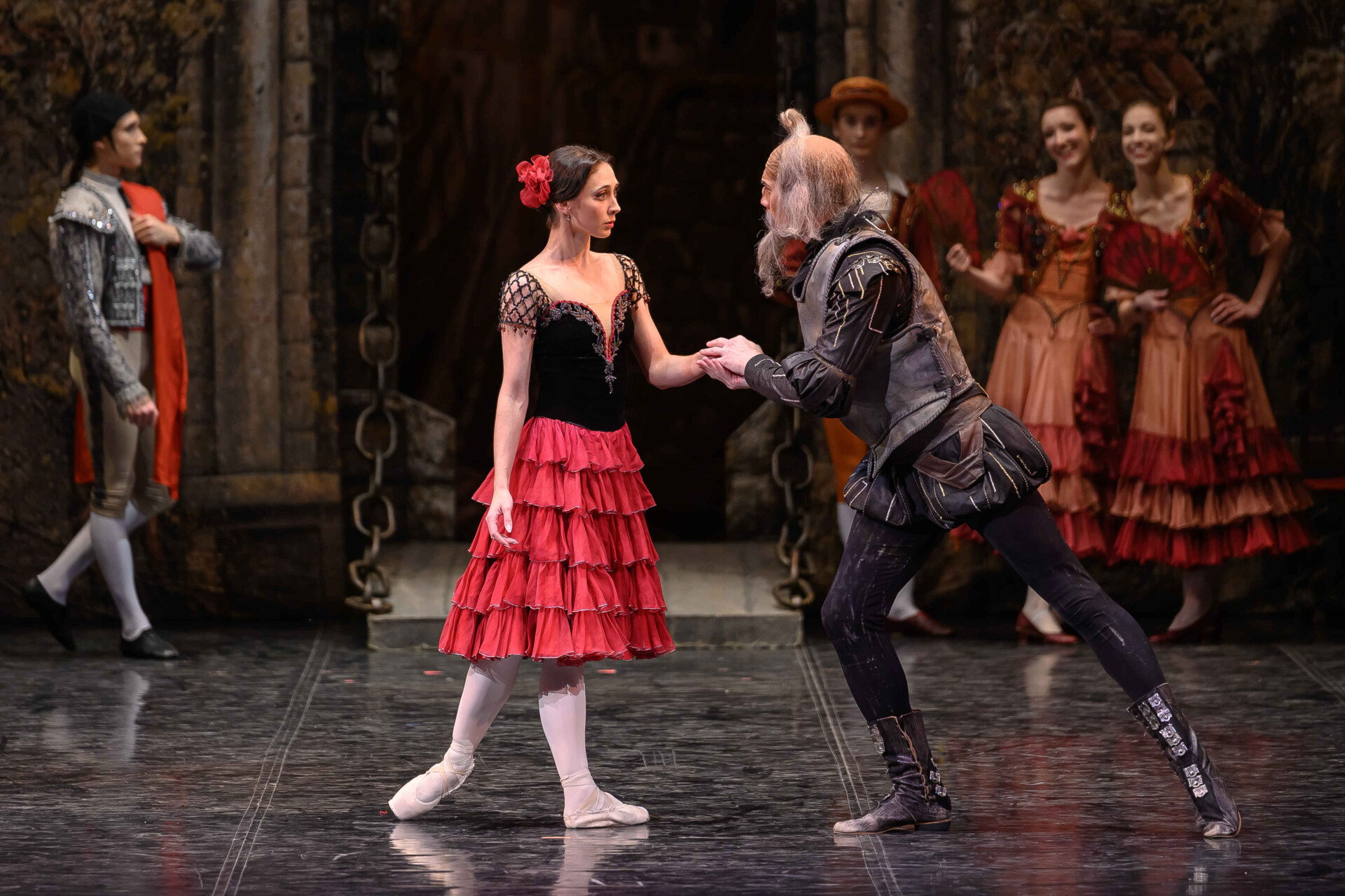 Unlike Cervantes’s original novel, the leading characters in the ballet are not the knight of the doleful countenance and his armour-bearer, but the innkeeper’s daughter Kitri and her sweetheart, the barber Basilio. Bolshoi Theatre soloist Yuliana Malkhasyants worked on the production in Perm. The image of sultry Spain, conveyed by a wealth of typical dances, is completed by Andrey Zlobin’s scenery in the style of old black-and-white book illustrations.
