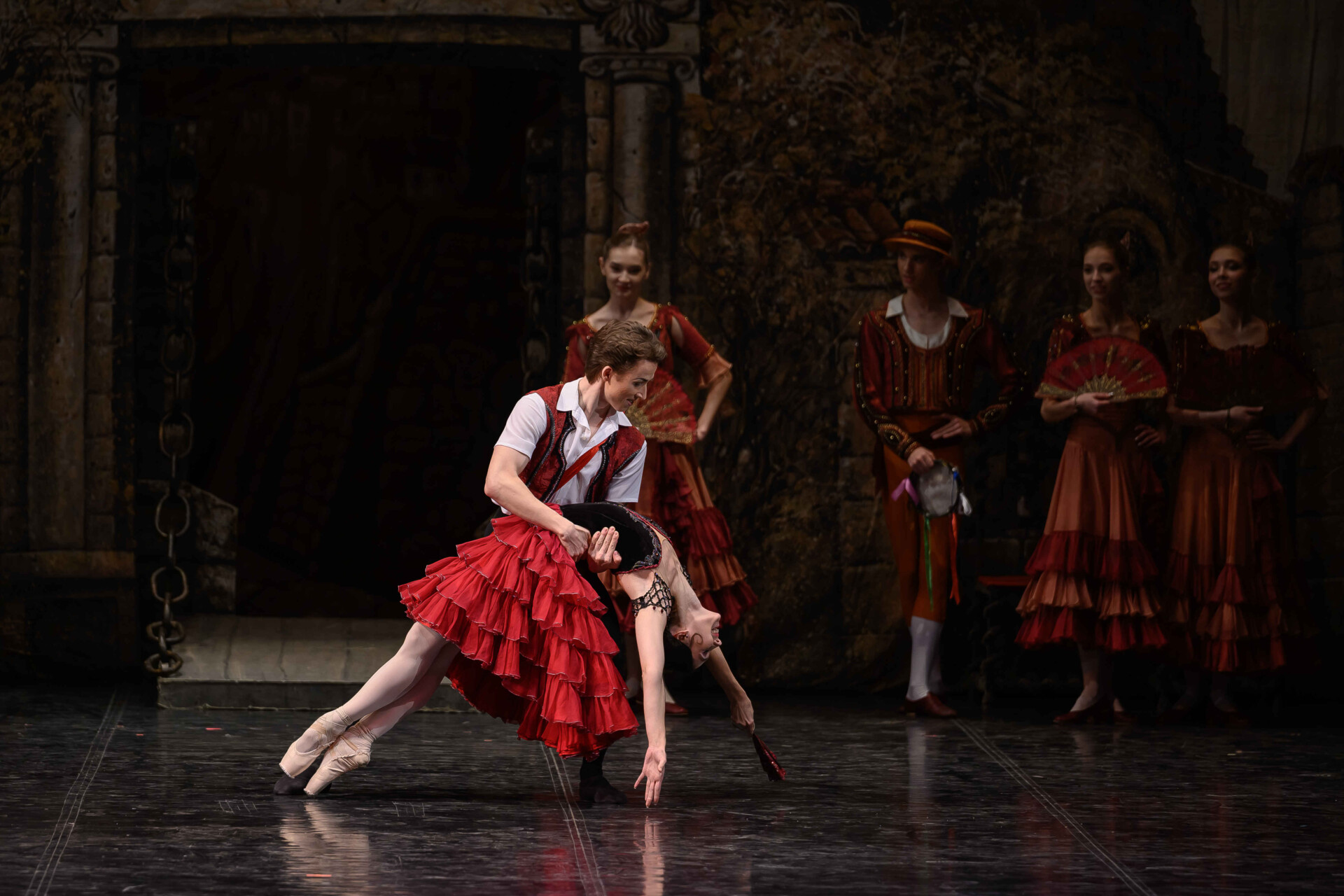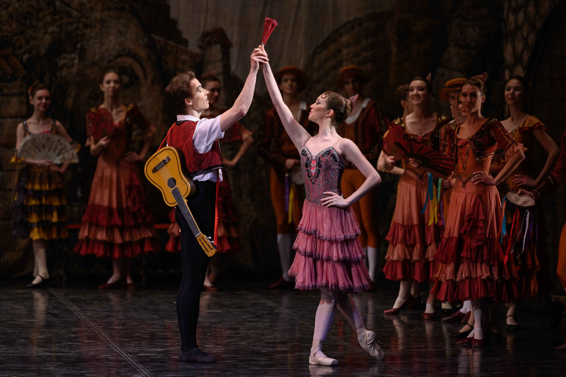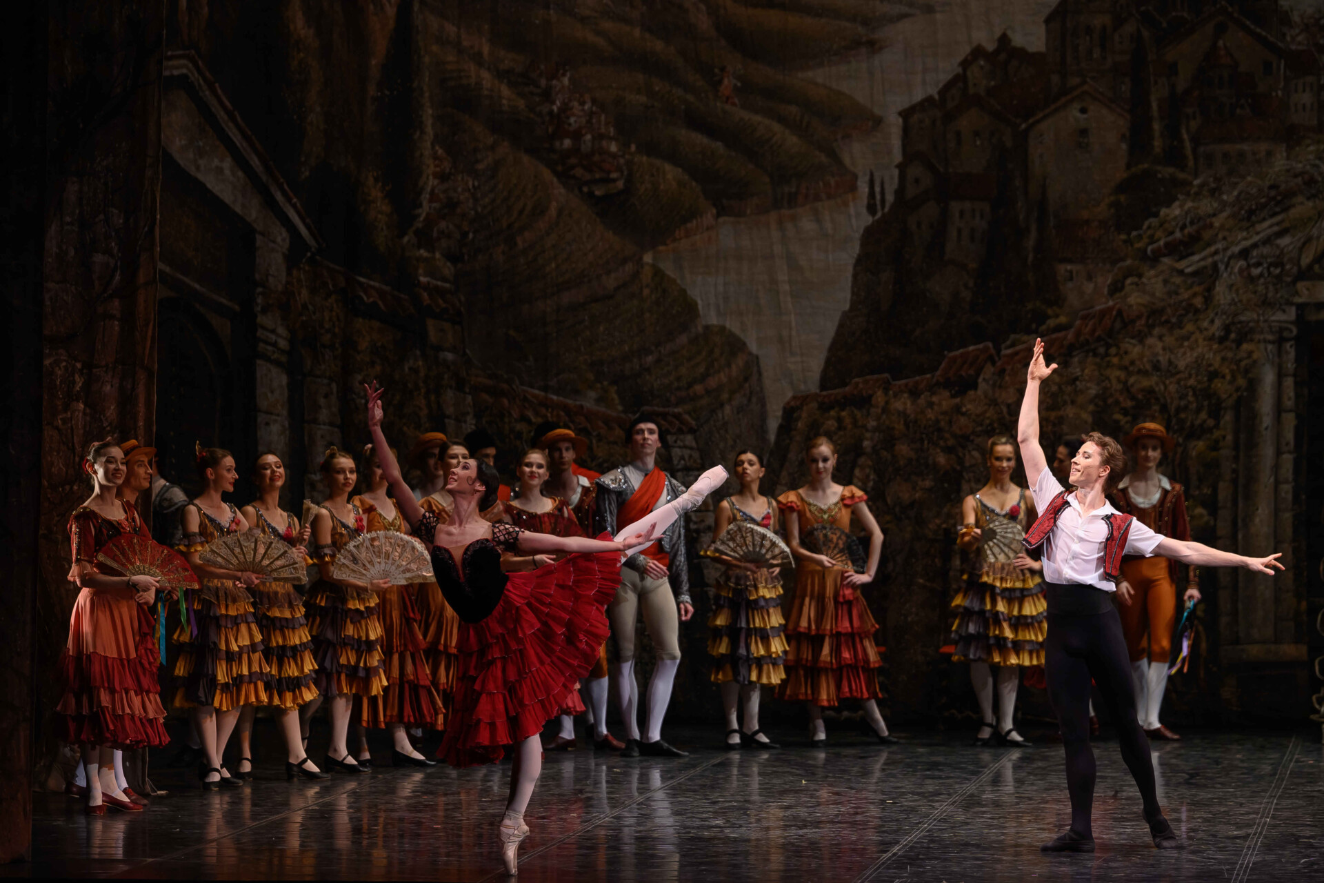 Unlike Cervantes’s original novel, the leading characters in the ballet are not the knight of the doleful countenance and his armour-bearer, but the innkeeper’s daughter Kitri and her sweetheart, the barber Basilio. Bolshoi Theatre soloist Yuliana Malkhasyants worked on the production in Perm. The image of sultry Spain, conveyed by a wealth of typical dances, is completed by Andrey Zlobin’s scenery in the style of old black-and-white book illustrations.