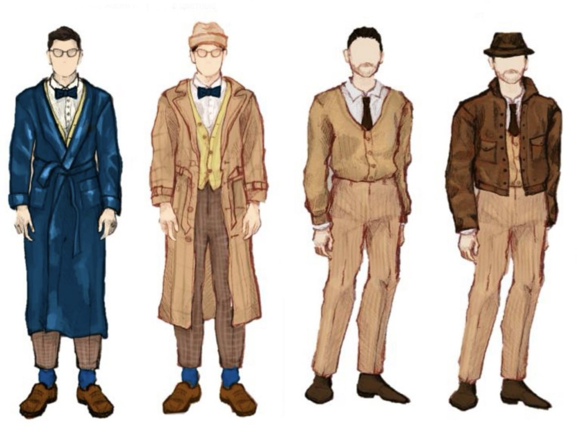 — В сферу моих профессиональных интересов входит исследование глобальных трендов высокой моды и интеграция их кодов в театральную реальность. Например, одна из заметных тенденций — романтизация и инфантилизация мужского образа — нашла отражение в костюме Макса. Его образ построен на сочетании понятного, расслабленного микса денима, клетки и твидового пиджака, далее дополняется лесным кейпом, подсвечивающим его неопределенность, непосредственность, сомнительность и интеллектуальную взъерошенность. Так рождается портрет романтического героя.