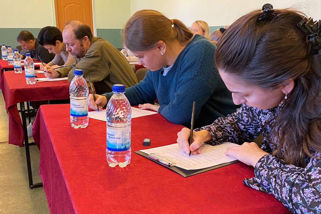 В воскресенье, 2 октября, семь музыкантов оркестра проверили свой уровень музыкальной грамотности — участникам предстояло на слух записать на нотный лист мелодию, которую исполнял иллюстратор. Для театра был выбран самый высокий уровень сложности — для профессионалов, — трехголосное музыкальное произведение, написанное нашей современницей, российским композитором Наталией Бойцовой специально для диктанта. Иллюстратором — исполнителем произведения — стал солист оркестра — Алексей Сучков (фортепиано).