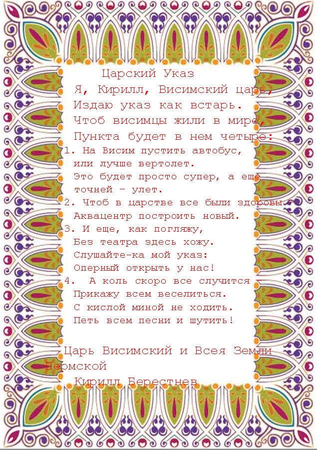 Напомним, что для участия в конкурсе, посвящённом опере-сказке «Двенадцать месяцев», ребятам нужно было написать от своего имени королевские указы. Редакцию «Пятницы» и коллектив театра оперы и балета в буквальном смысле завалили письмами! В общей сложности на наш конкурс пришло более 100 указов от ребят со всего города, поэтому выбрать победителей нам было очень непросто.