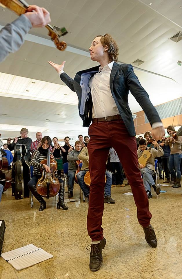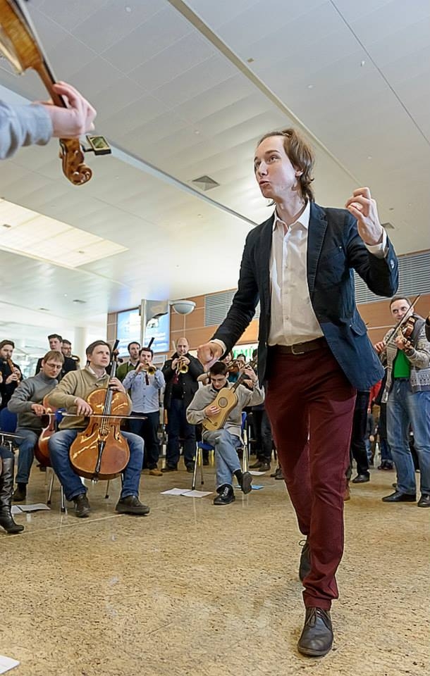 Оркестр musicAeterna в рамках проекта «Золотая Маска» в городе» исполнил в терминале D аэропорта Шереметьево увертюру к опере Моцарта «Свадьба Фигаро». Фото Дмитрия Дубинского
