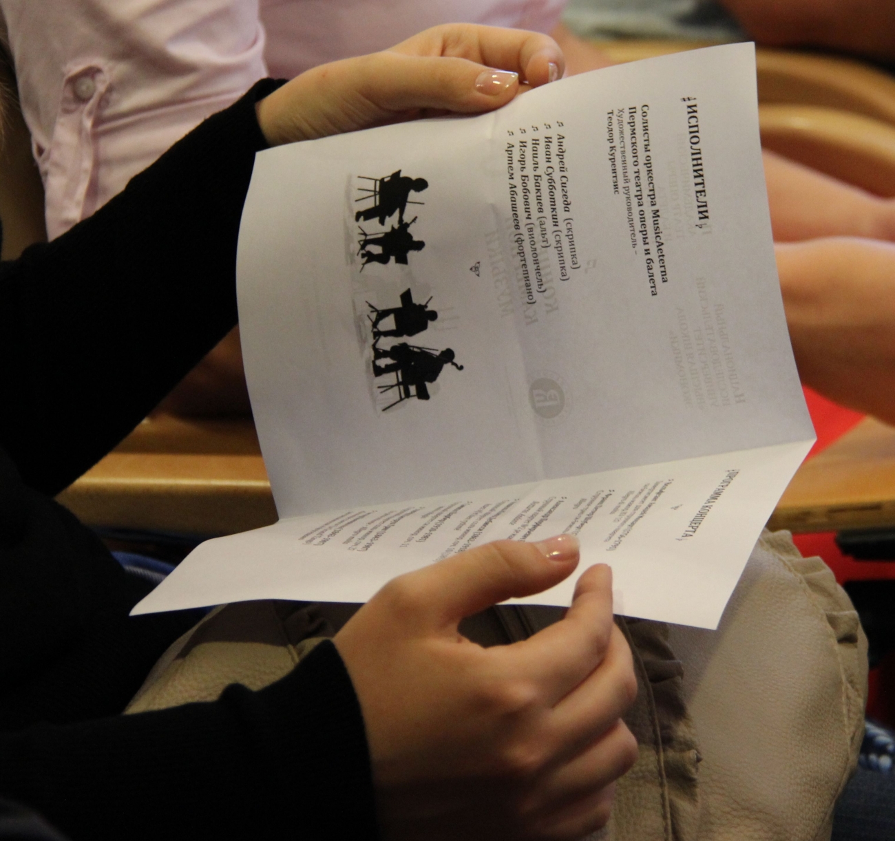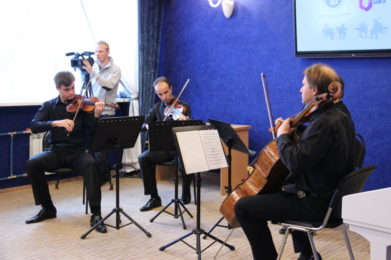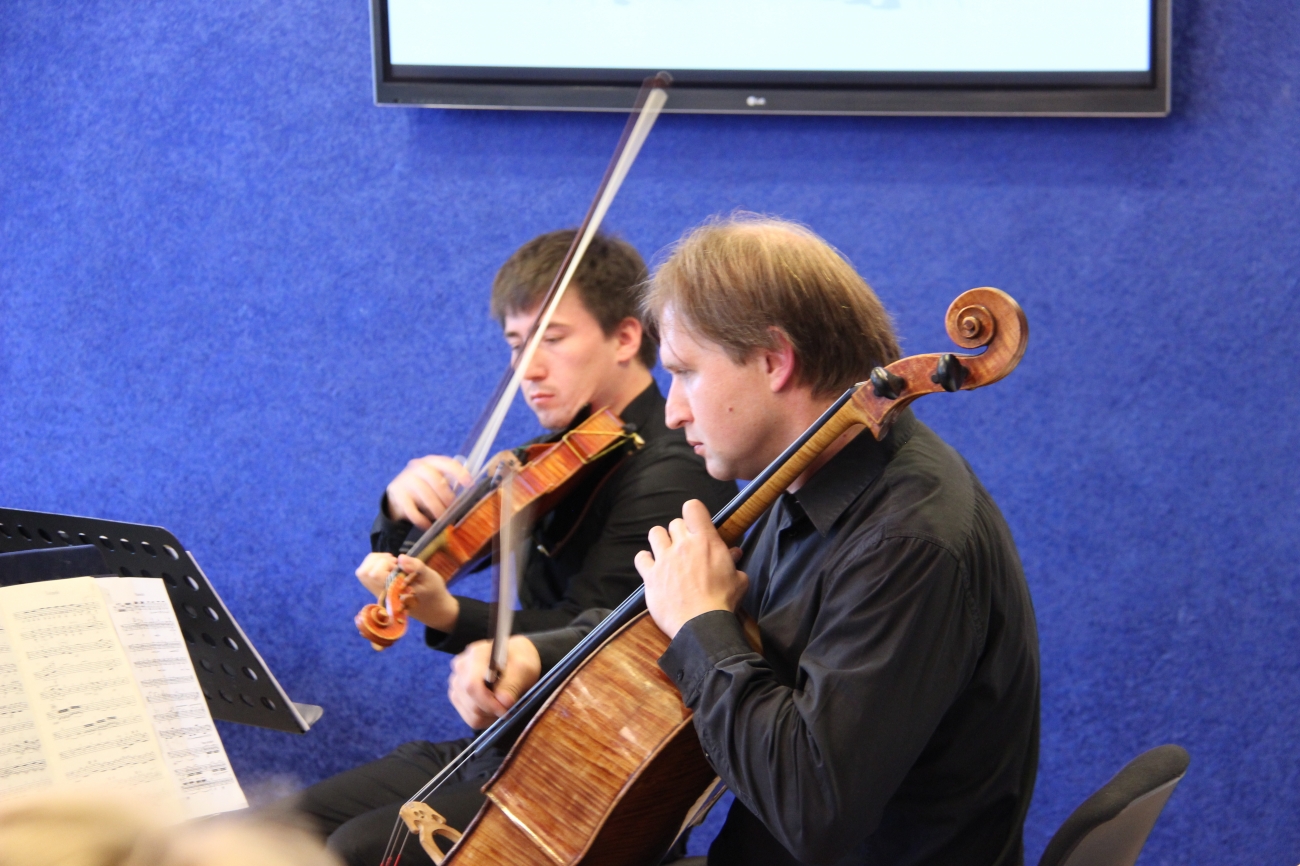После подписания соглашения солисты оркестра musicAeterna: Андрей Сигеда (скрипка), Иван Субботкин (скрипка), Наил Бакиев (альт), Игорь Бобович (виолончель), Артем Абашев (фортепиано) дали концерт для студентов, педагогов и гостей Вышки.