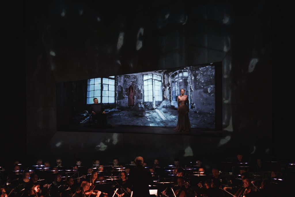 Две Юдит — Наталия Ляскова и Наталья Буклага — были хороши, каждая по-своему, и выглядели весьма органично, несмотря на то, что оказались вписаны в узкую и притом скошенную щель-нишу, отведенную режиссером для певцов. Нервная энергия и юное упрямство Лясковой, светлые краски ее воздушно-легкого меццо-сопрано спорили с женским природным естеством и темными обертонами зрелого меццо Буклаги; трудно предпочесть одну другой, они были очень разными. Но главная ценность в том, что и певцы, и огромный оркестр, рассаженный прямо в партере (для чего пришлось поднять оркестровую яму вровень с полом и снять первые ряды кресел), и вся постановочная команда — все вместе создали очень цельный, оригинальный по визуальному коду и неожиданный по смыслу спектакль, который рассказывает нам удивительные вещи: о темном витализме и нездешних энергиях, о том, в какие странные и причудливые формы может облекать художественное воображение жизнь, природу и человеческое подсознание.