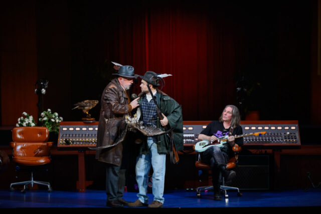 Ни романтический лес, ни амбициозная рок-среда не подаются авторами спектакля полностью всерьёз: то и дело возникают «фишечки», которые настойчиво подчёркивают, что всё происходящее на сцене — ненастоящее. Зритель благодарным смехом отзывается и на танцевальную цитату из «Криминального чтива», и на портрет Паваротти в роли «уважаемого предка», и на «Чёрный ворон, что ты вьёшься» в контексте классической оперы.