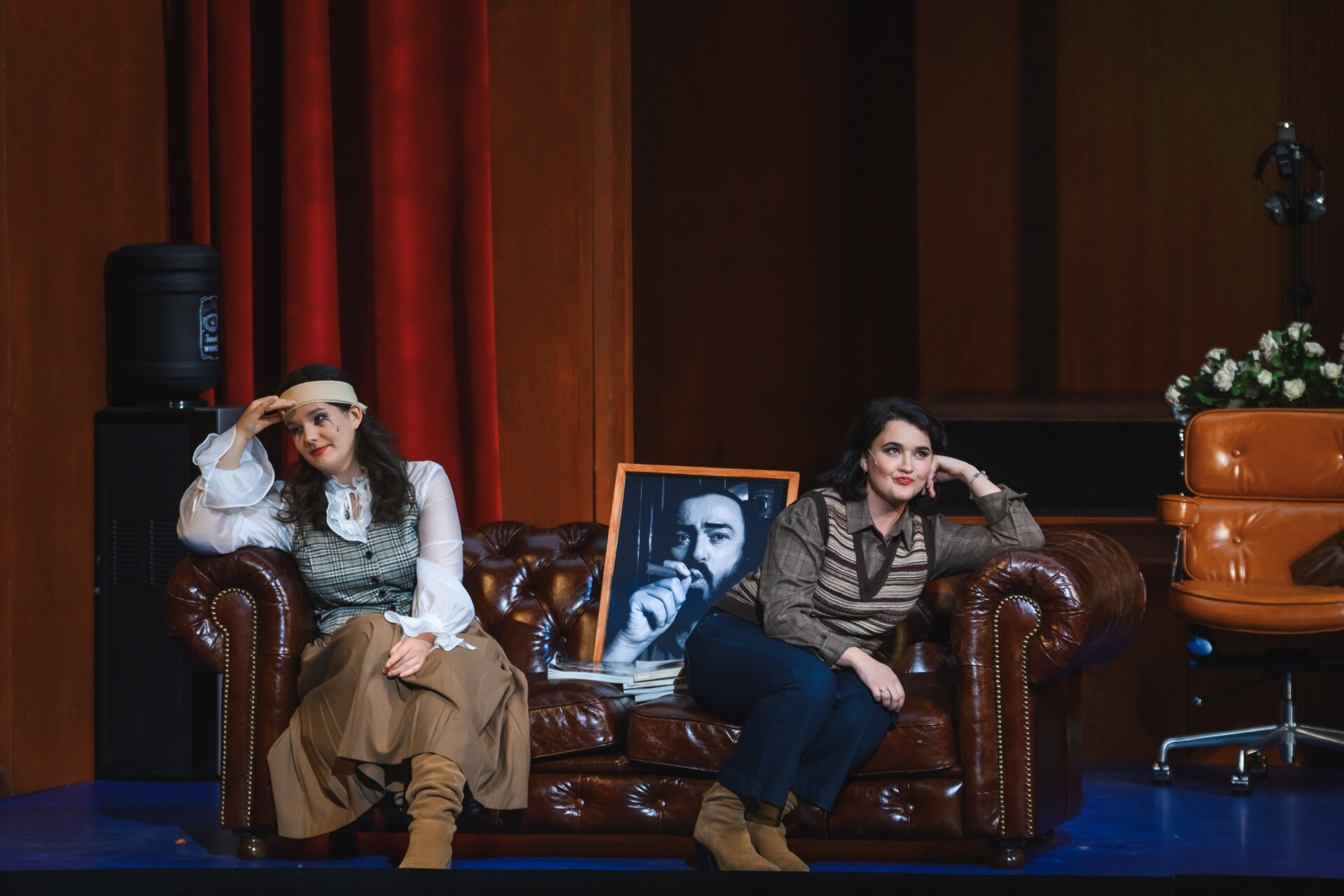 А начиналось все как бытовая, обыденная сценка: пока хористы беседуют, ожидая начала записи, в «предбанник» студии вваливается подвыпивший, расхристанный солист — Макс, ковыляет к дивану, то и дело прикладываясь к бутылке, но прячет ее при виде рассерженной Агаты. Та, попеременно с подругой Анхен, пытается привести незадачливого жениха в чувство — но тщетно. Партию Макса в первом составе вполне достойно спел и очень смешно и живо сыграл Борис Рудак — один из ведущих солистов Пермской оперы, поющий все ключевые партии от Хозе до Германа. Комическое в его образе доминировало; отлично был режиссерски обыгран и дуэт Макса с Каспаром–Гарри Агаджаняном. Во втором составе партию Макса пел Давид Есаян; музыкально партия у него получилась весомее и звучнее, но актерски он явно проигрывал Рудаку.
