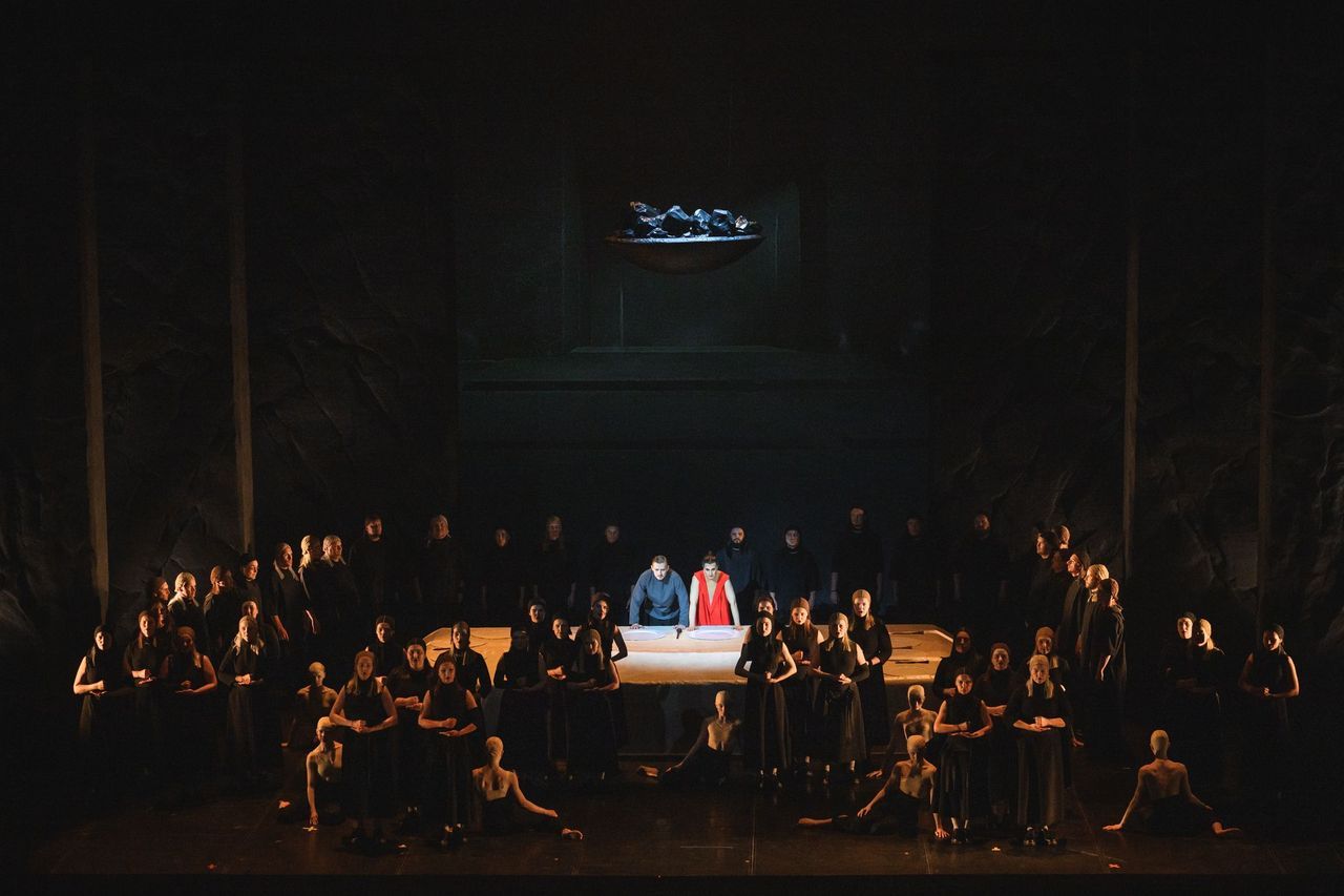 Сценическая версия «Самсона и Далилы», поставленная режиссером Анной Гусевой, известной по постановкам Дягилевского фестиваля De temporum fine comoedia Карла Орфа (2022), «Персефона. Симфония псалмов» на музыку Игоря Стравинского (2023), российской премьеры оперы Паскаля Дюсапена Passion (2024), носит отчётливый притчевый характер. Месседж этой притчи ясен, как божий день: в глобальной войне миров победителей быть не может. Проигравший тоже один-единственный — весь мир. Так что бесстрастно-изумленный взор маленького мальчика в белых одеждах, что бродит в прологе среди гор мертвецов и камней — это по мнению авторов спектакля и есть реакция Создателя на ужасный финал.