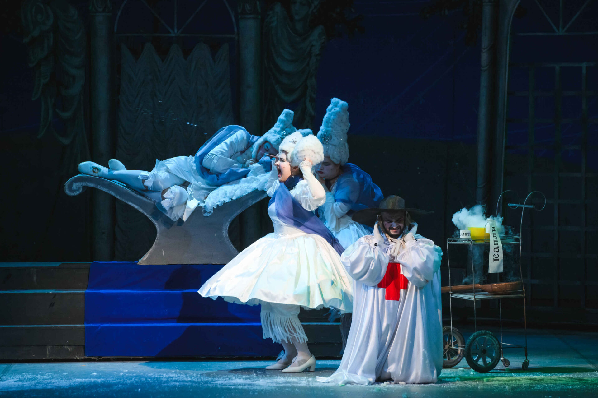 Дав указание Сыщику вести расследование, Король с Королевой приставили к Слезабете Доктора Шприца, чтобы он лечил ее от горя, а сами легли спать.