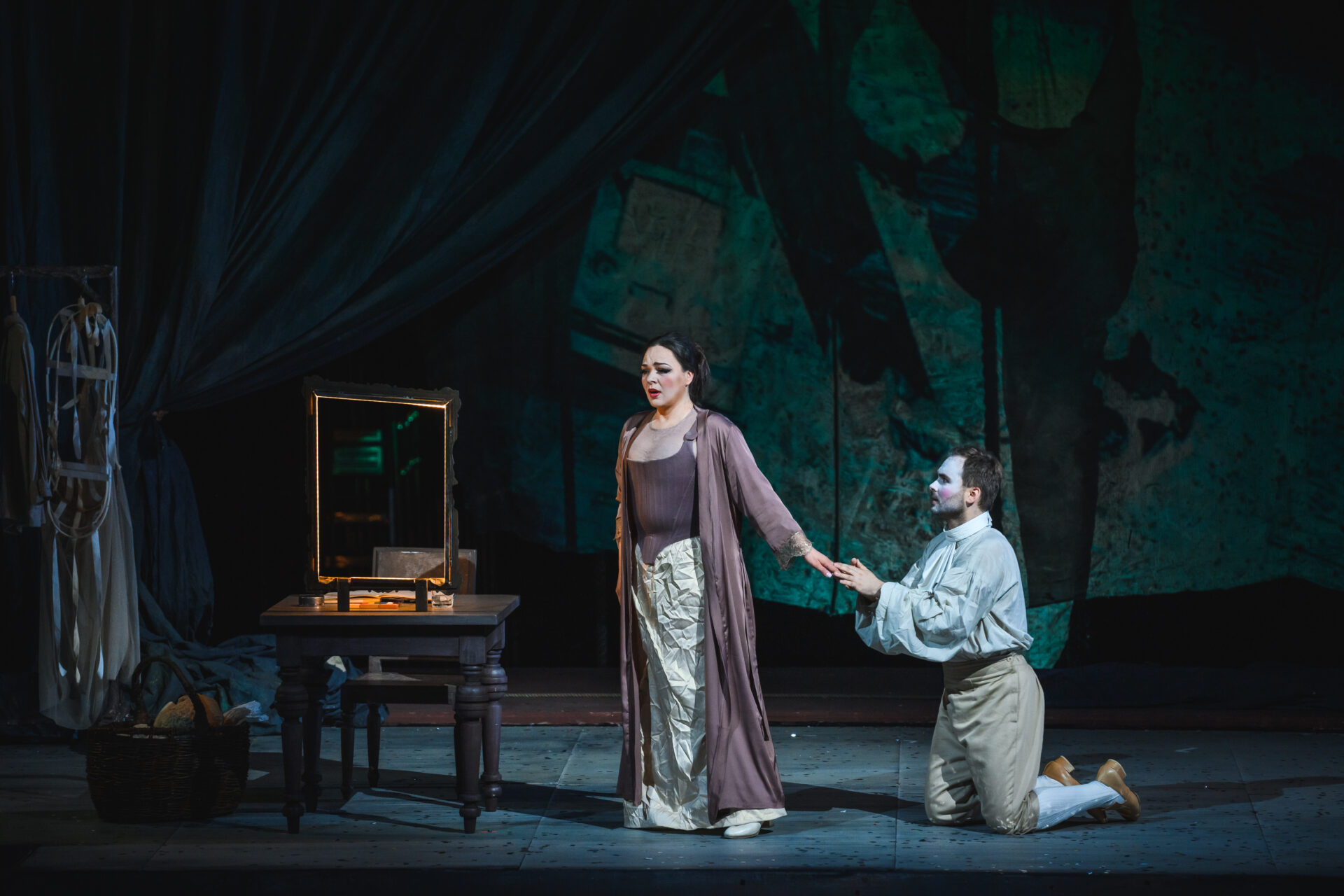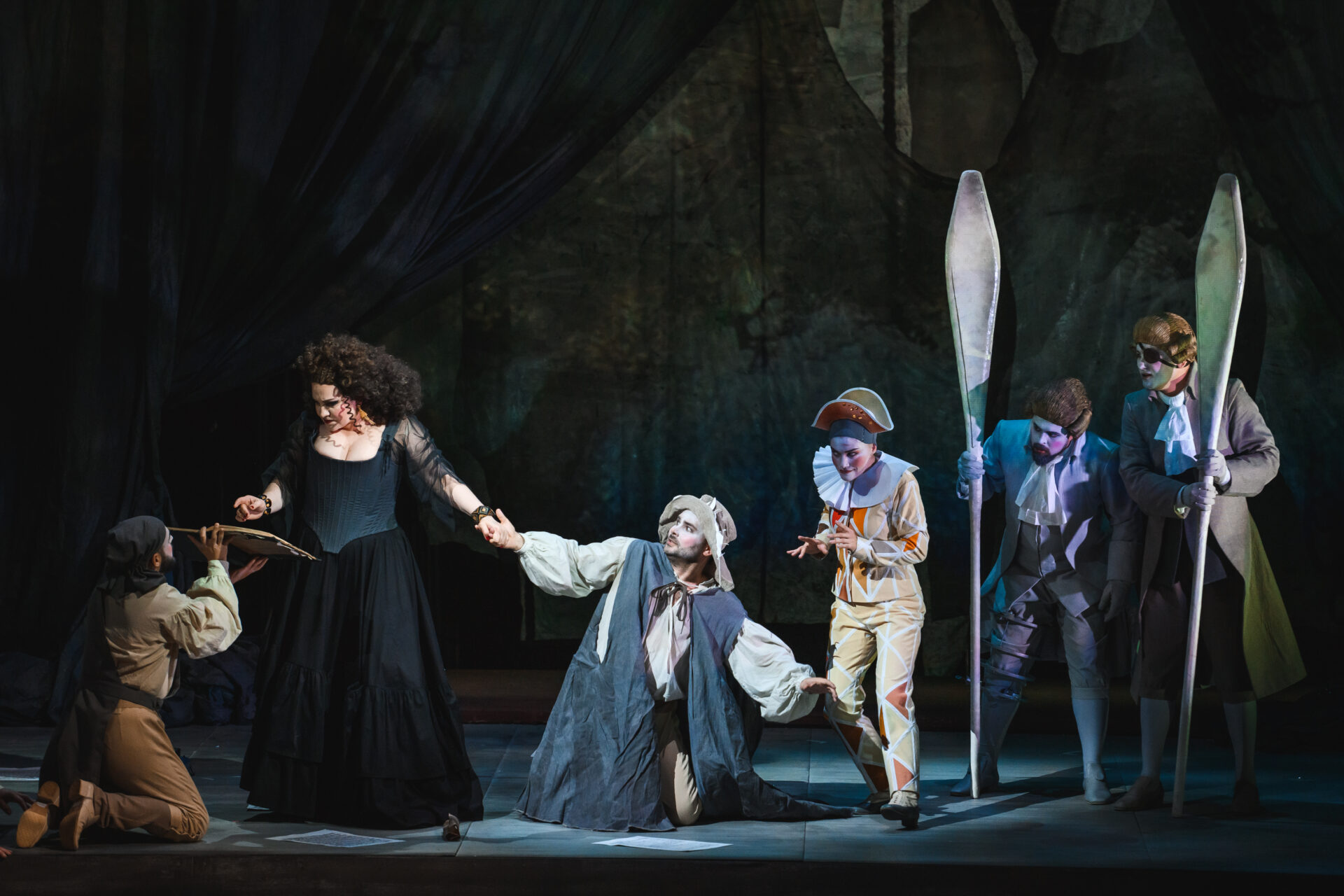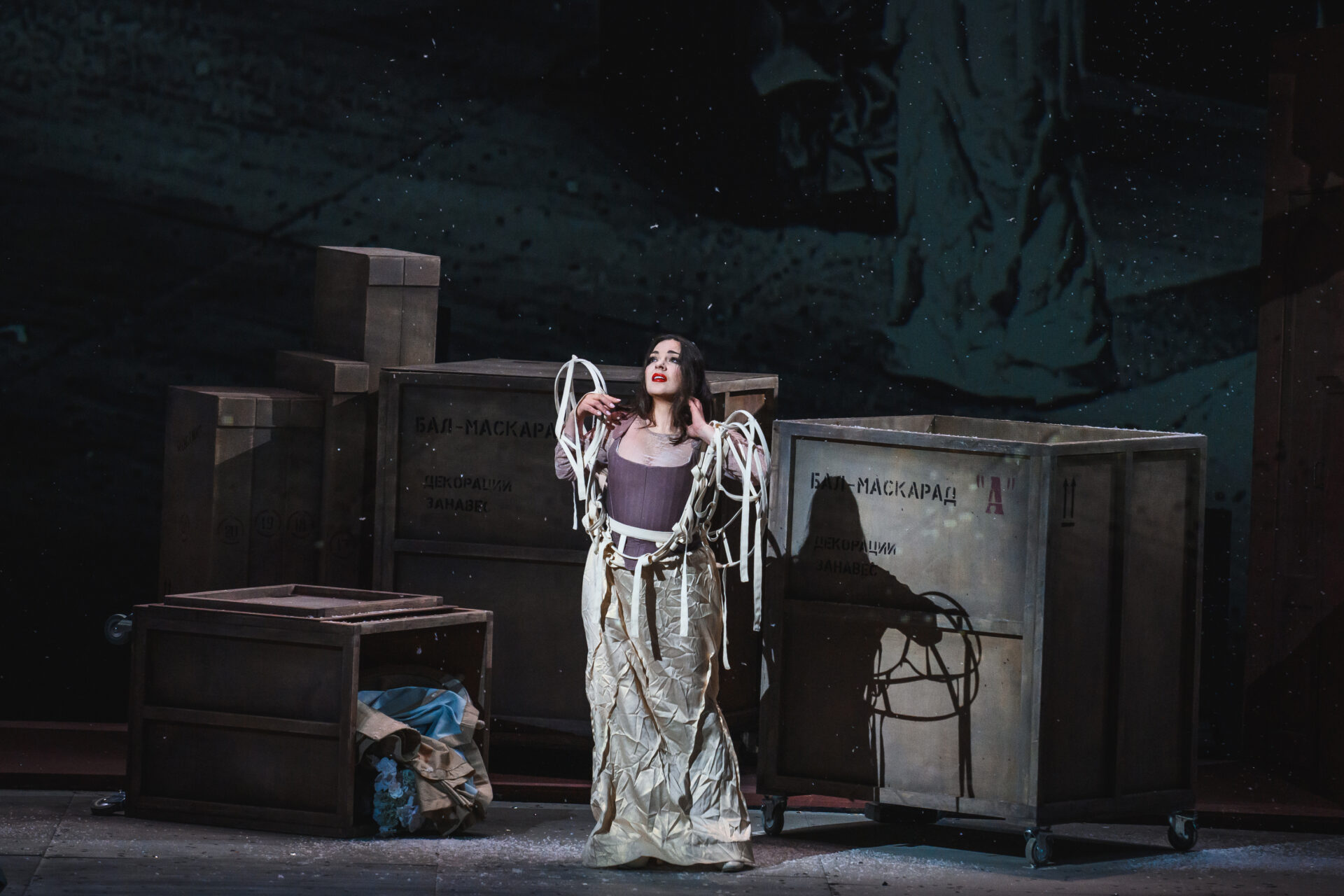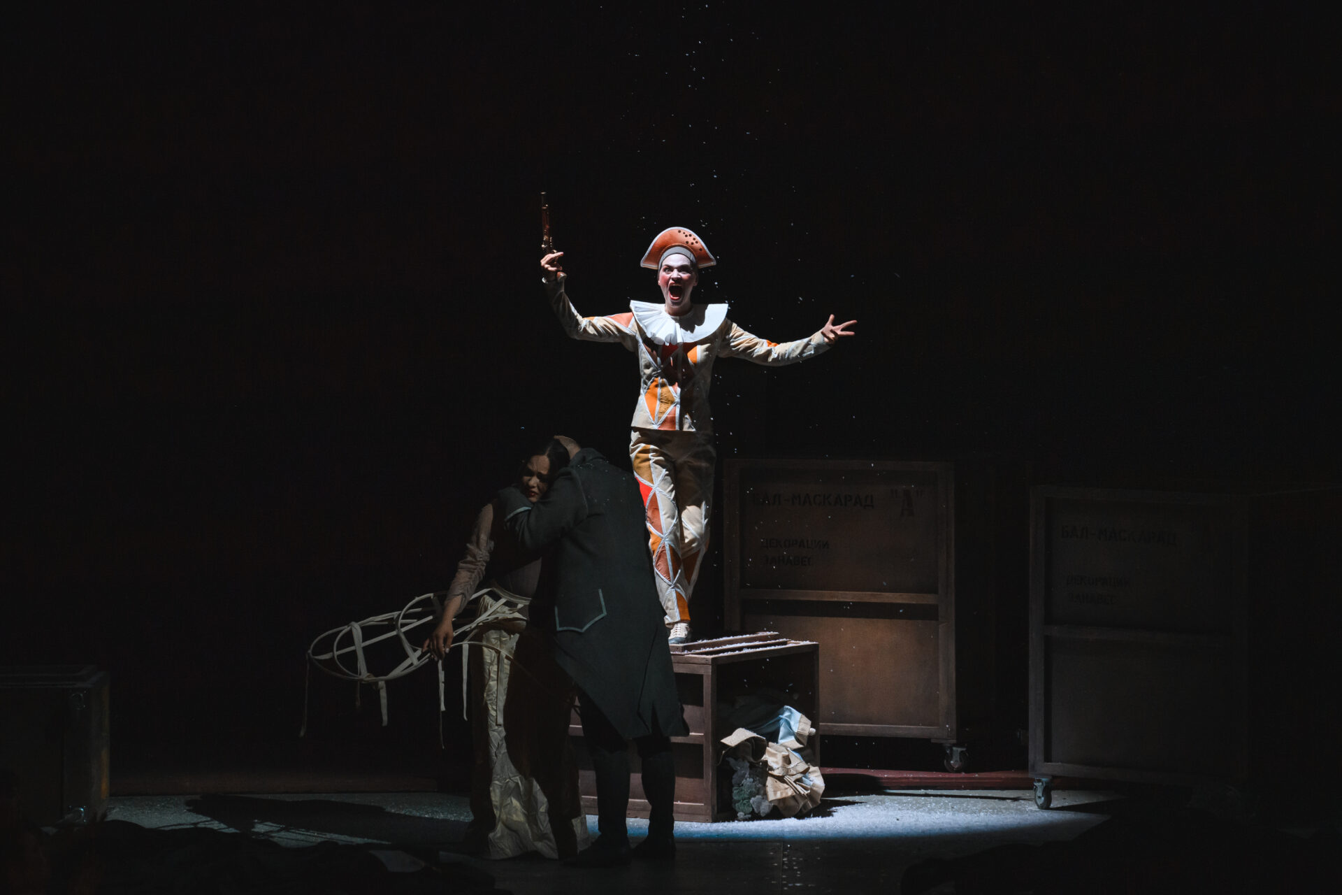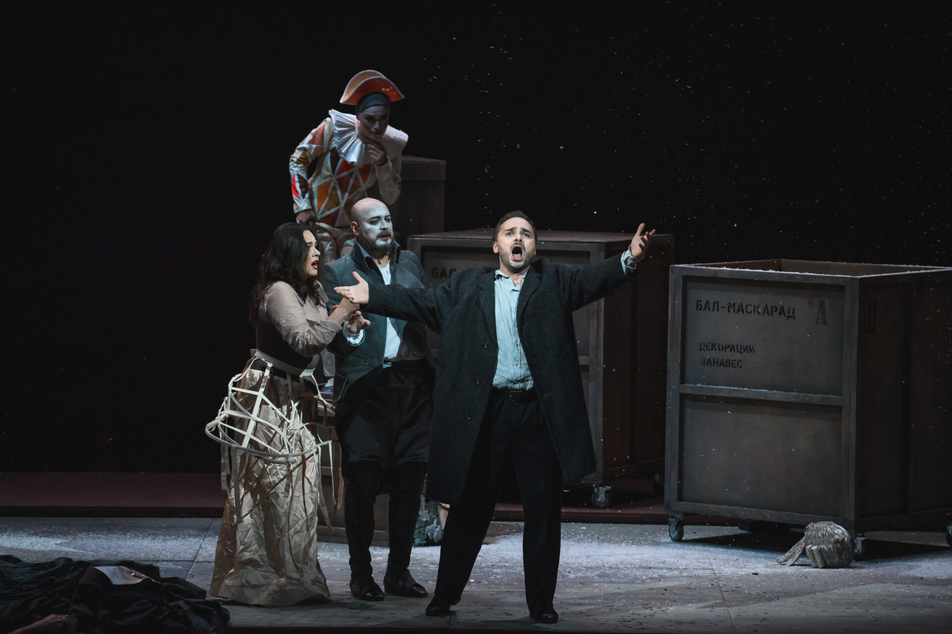 — Сочиняя одну из лучших своих опер, Верди балансировал на грани — между трагическим и комическим, между иронией и меланхолией. На одной из репетиций я вспомнил о том, как перед смертью Чехов с улыбкой попросил бокал шампанского, выпил всё до дна, тихо лег на бок — и вскоре умолк навсегда. Герои «Бала-маскарада» любят, ревнуют и умирают с той легкостью и с той страстью к жизни, которая вообще свойственна итальянскому искусству и итальянской опере. Жанр нашего спектакля — трагифарс. В нем встречаются два мира — закулисья и сцены. Всегда ли можно провести границу между реальностью и вымыслом? И не является ли жизнь подлинным балом-маскарадом, где все носят маски — и всё оказывается не тем, чем кажется?