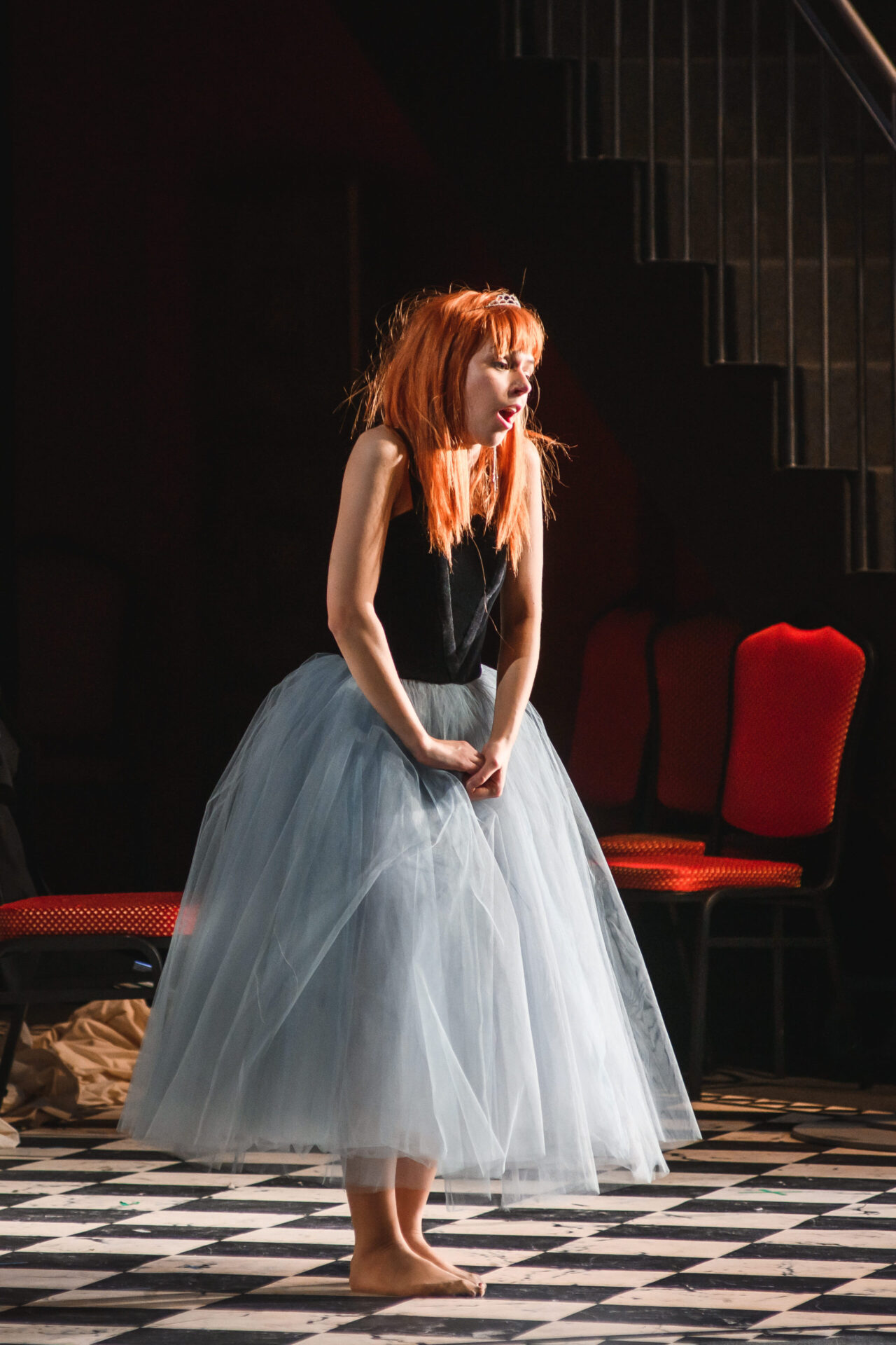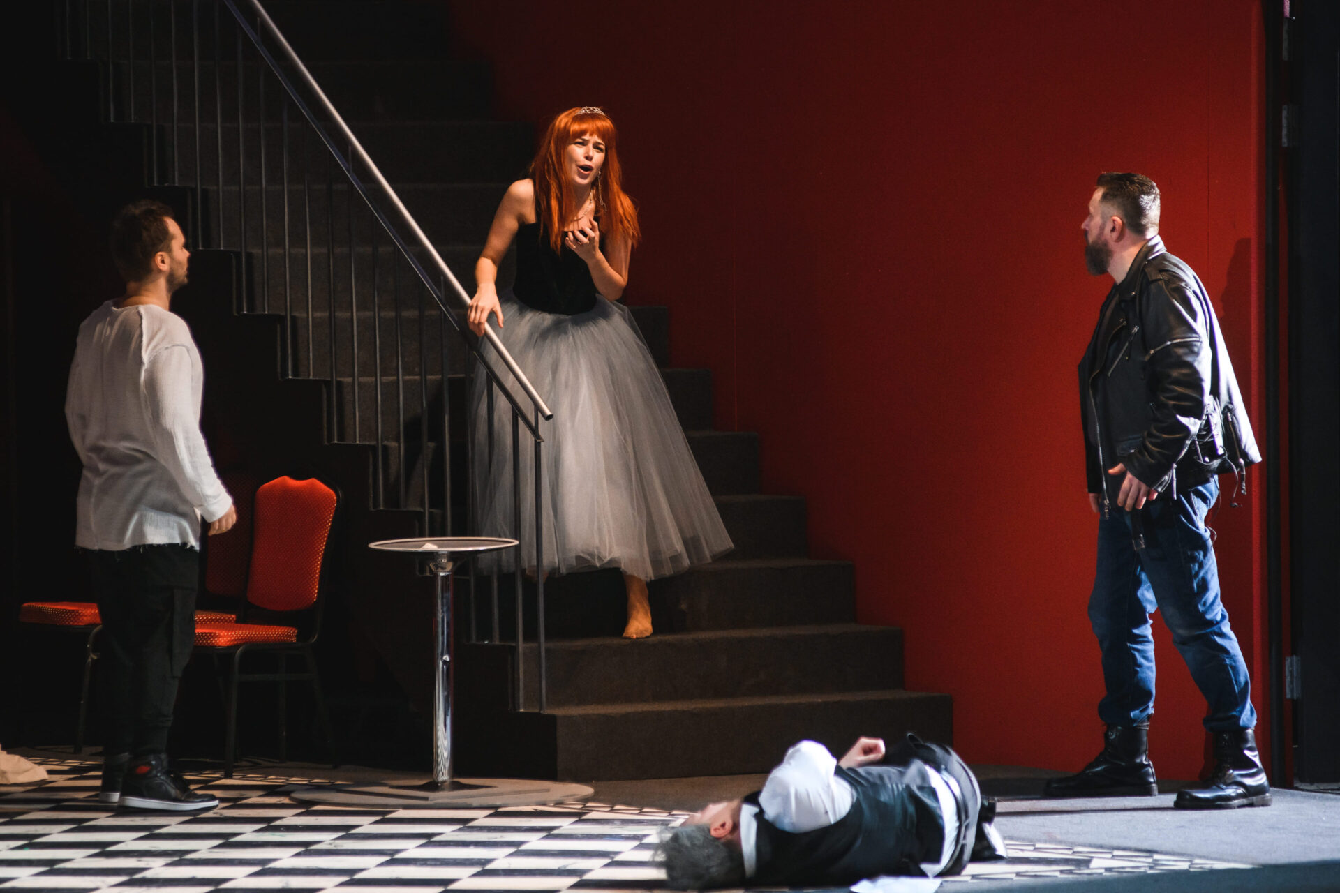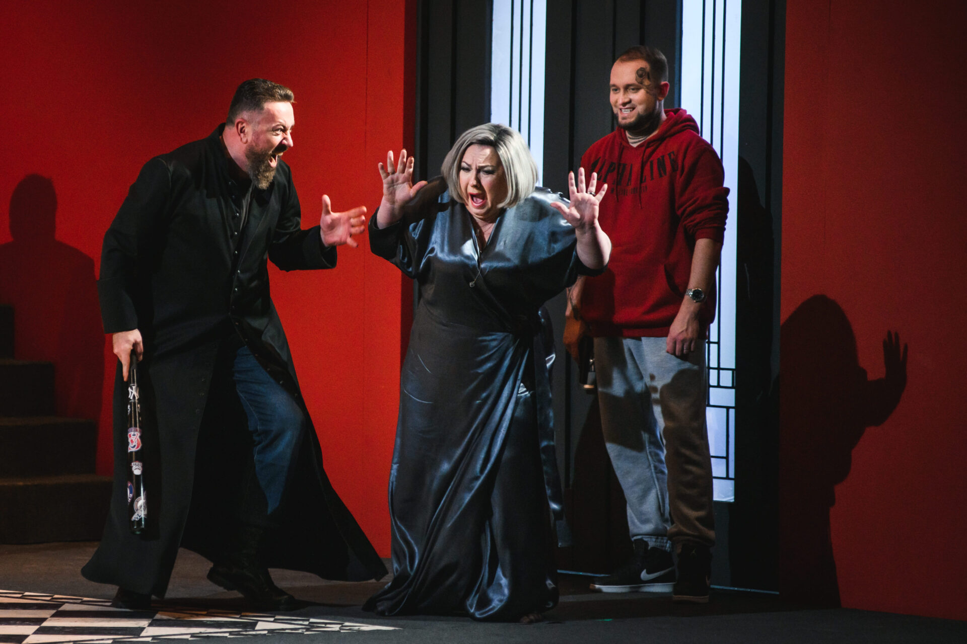 В спектакле персонажи раздваиваются, предстают в новых ролях, по-другому трактуются; реплики, изначально присущие одним, отданы другим героям. Понадобилось купировать несколько музыкальных фрагментов, после чего новый сюжет встал как влитой.