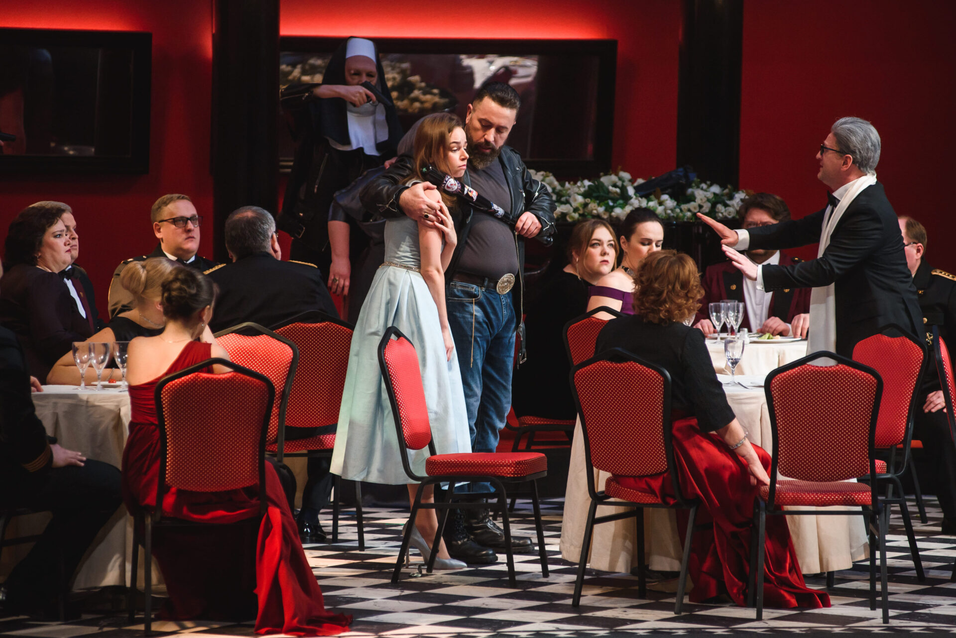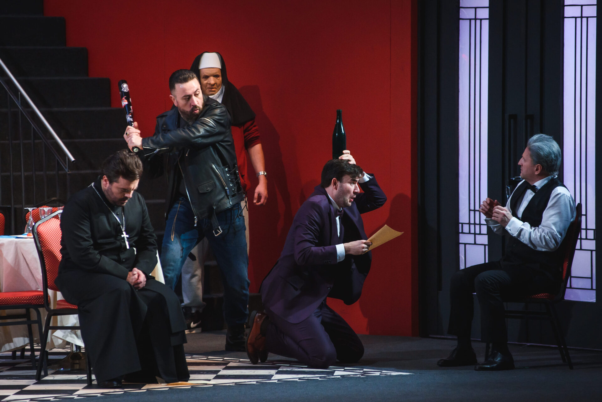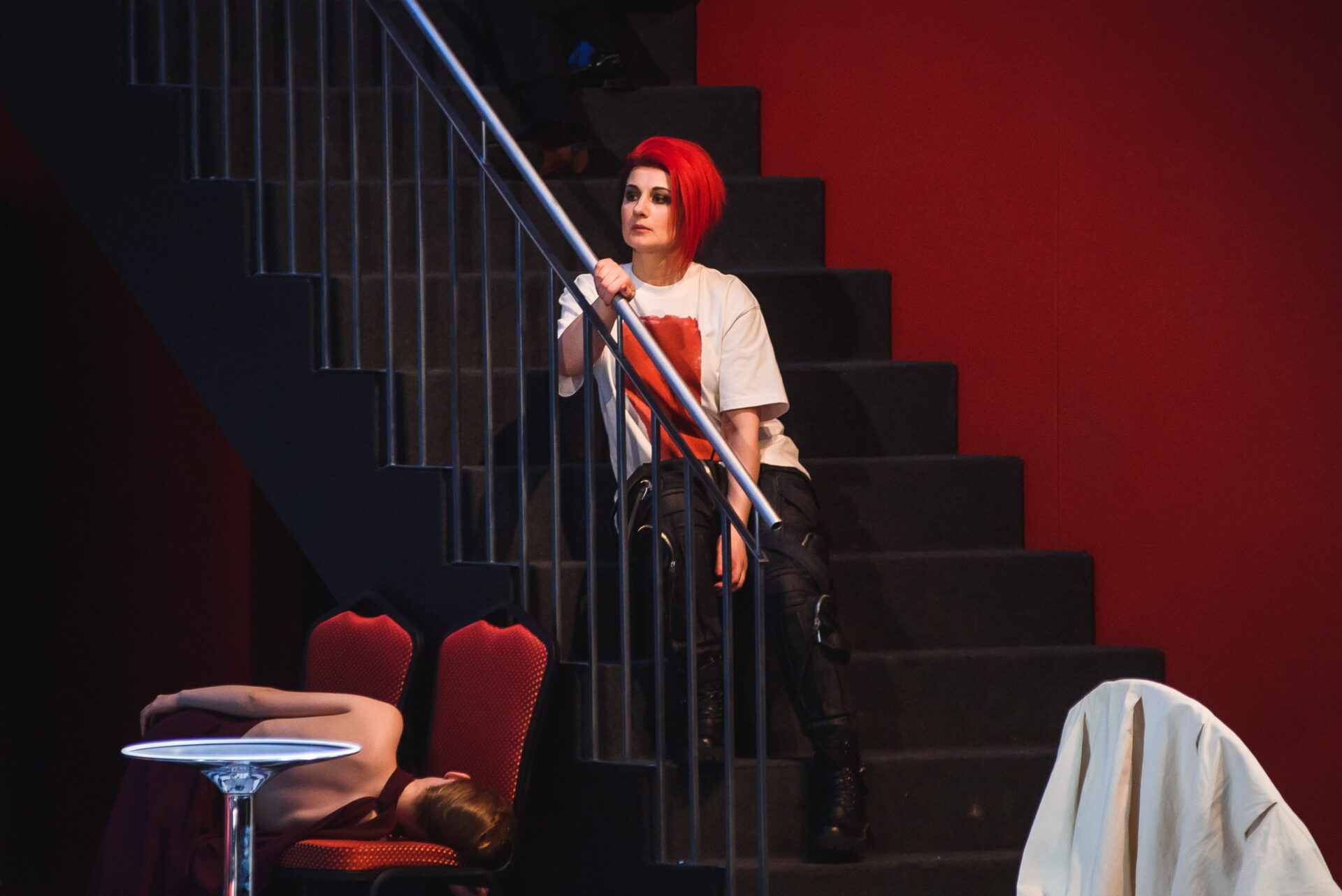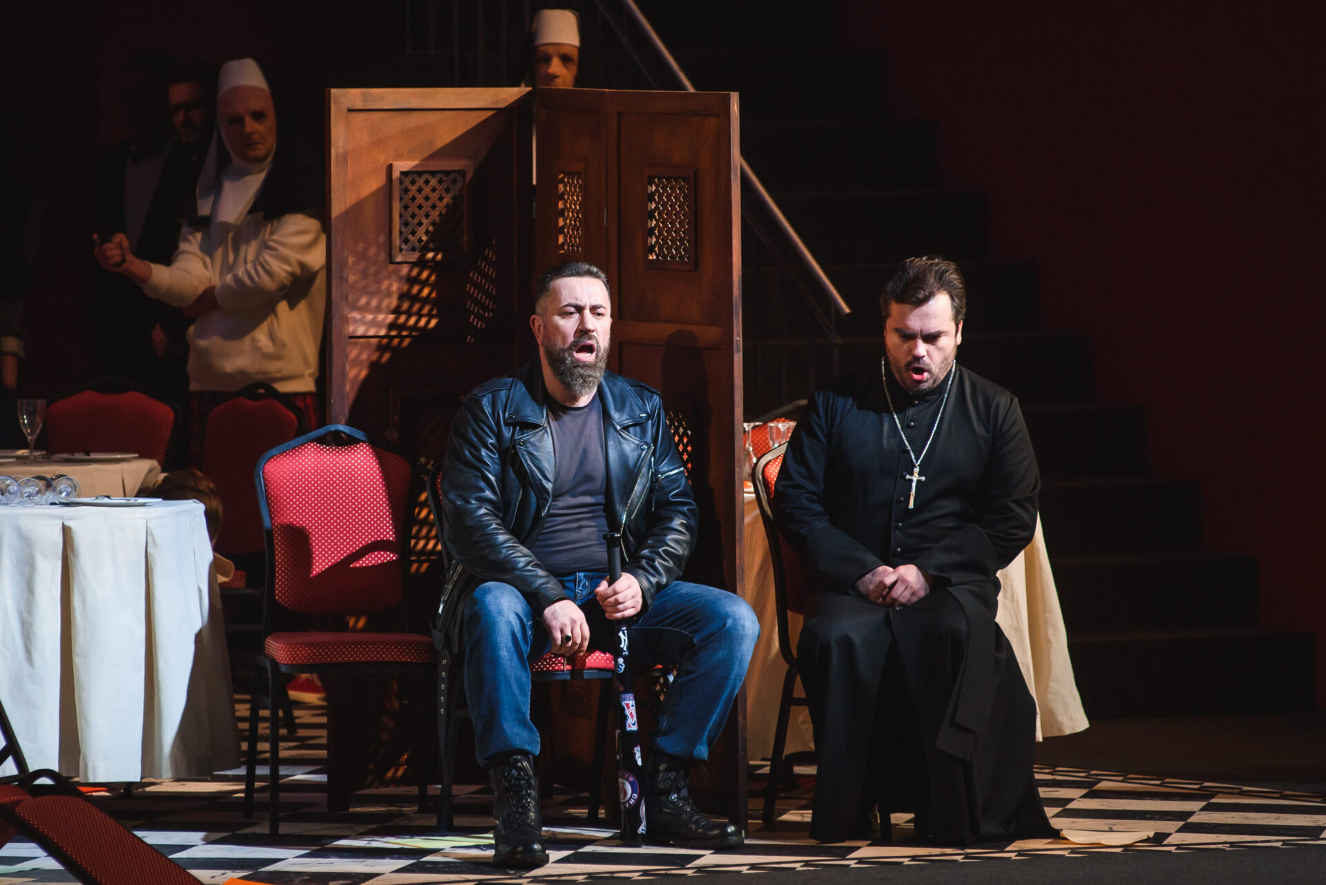 В спектакле персонажи раздваиваются, предстают в новых ролях, по-другому трактуются; реплики, изначально присущие одним, отданы другим героям. Понадобилось купировать несколько музыкальных фрагментов, после чего новый сюжет встал как влитой.