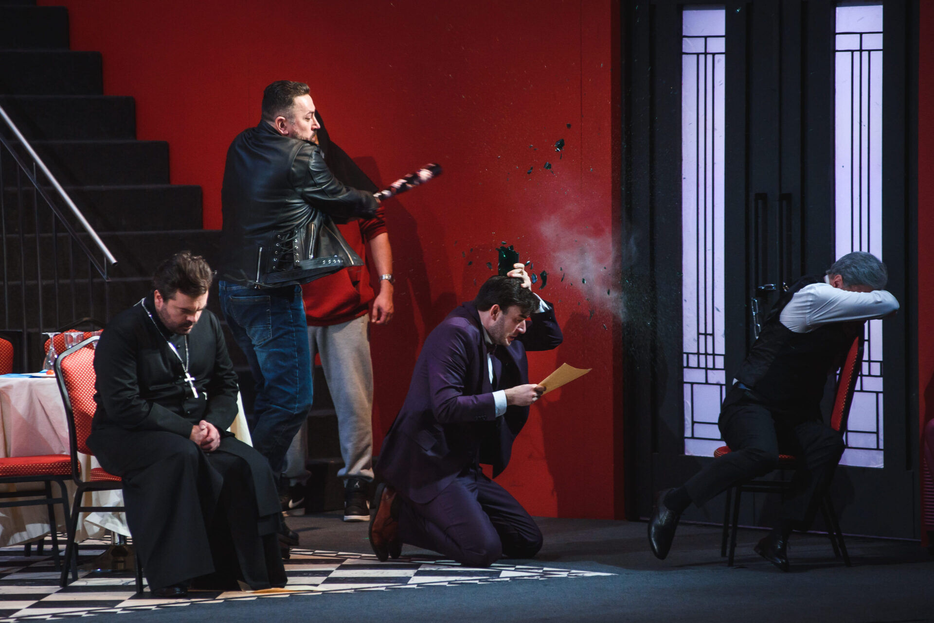 Доктор Фауст Шверляйн отмечает свой юбилей в кругу семьи, друзей и деловых партнеров. Внезапно на праздник врывается банда в масках во главе с Мефистофелем по прозвищу «Майор». Преследуемый чувством мести за погибшую сестру Маргариту, «Майор» предлагает Фаусту подписать чистосердечное признание в доведении до самоубийства.