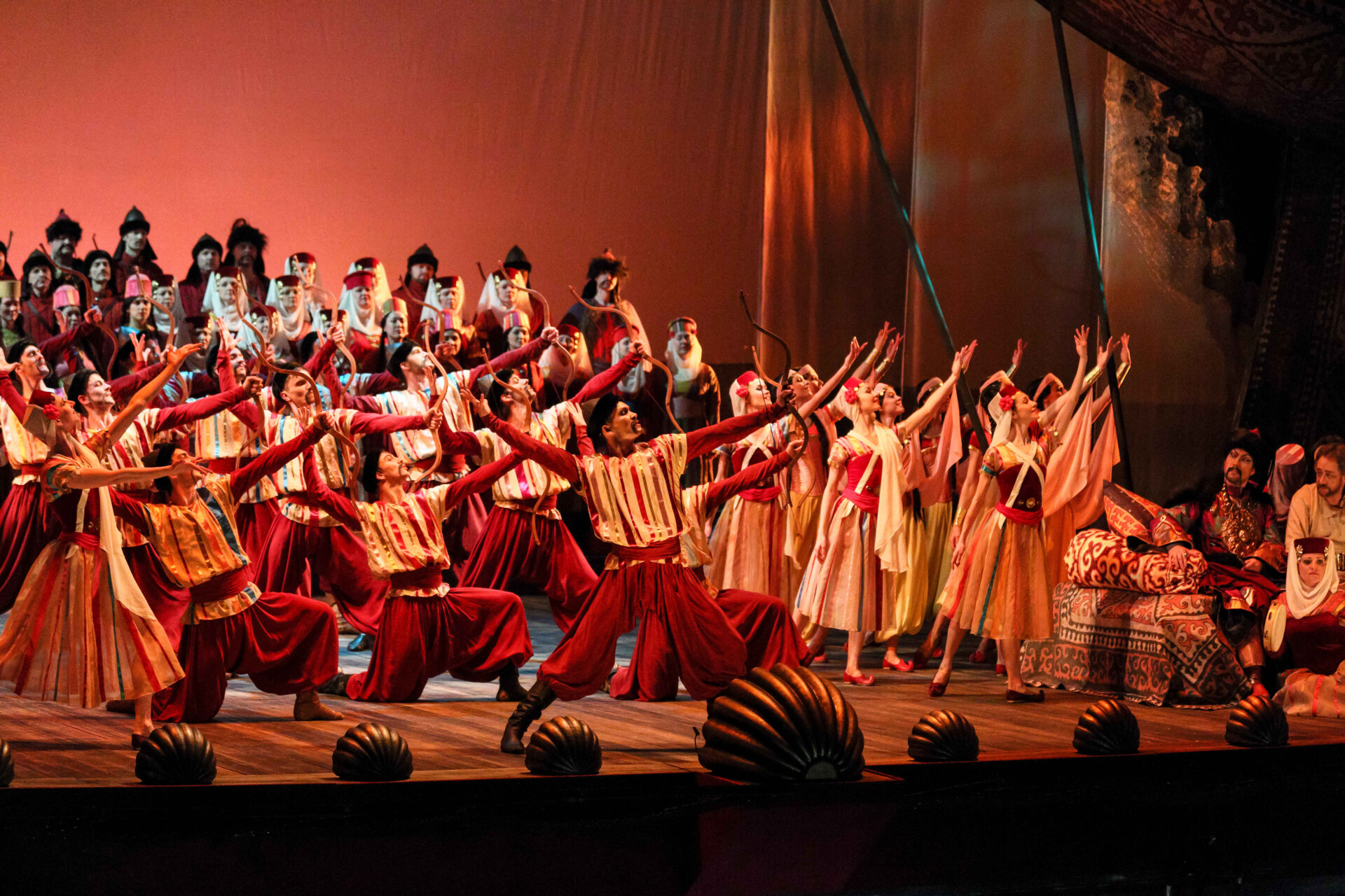 Входят половецкие невольники и невольницы, за ними свита и приближенные Кончака. Начинается половецкая пляска во славу хана Кончака.