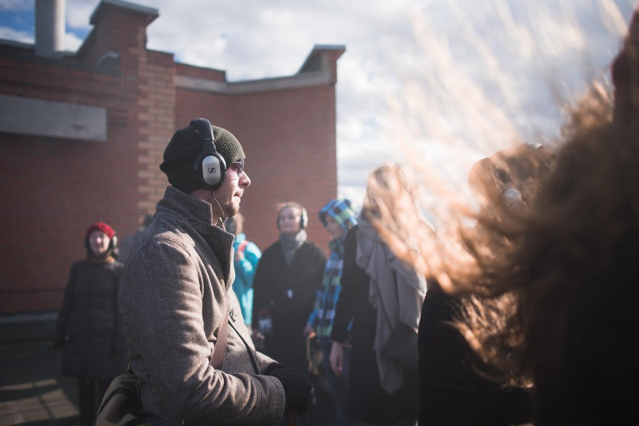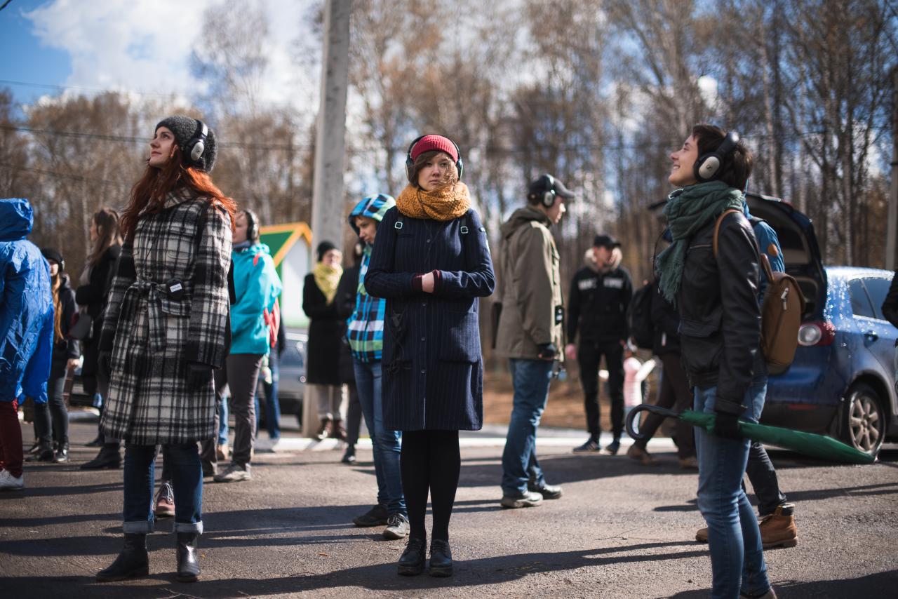 • перформанс о восприятии себя в городском пространстве в режиме стерео