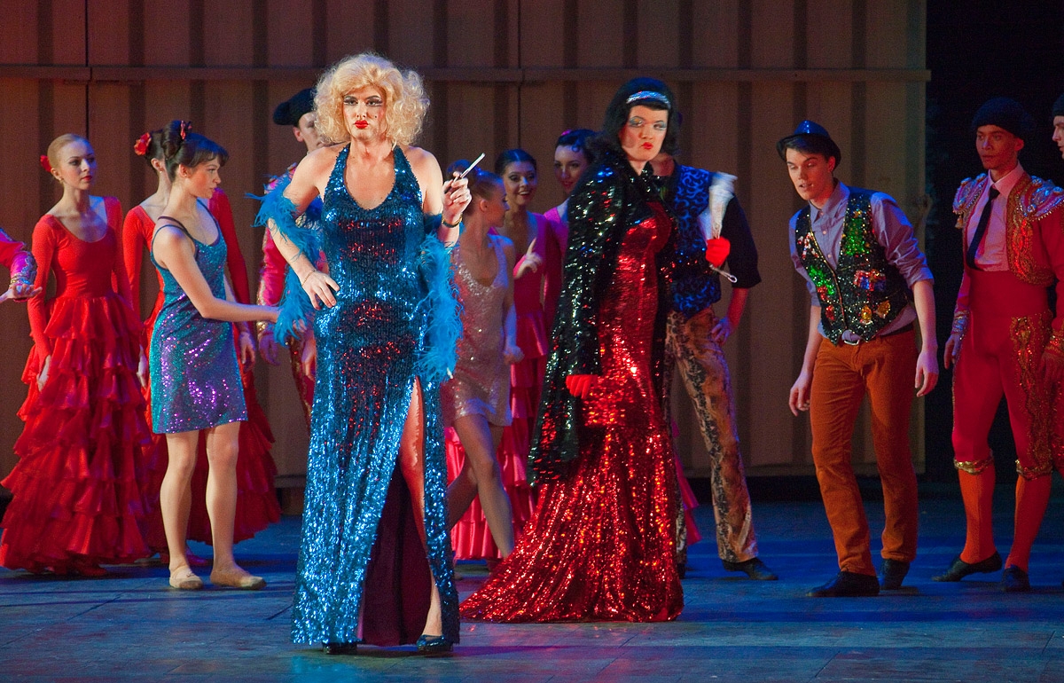 В спектакле события разворачиваются в семидесятые годы ХХ века, в Испании. Страна очнулась от кошмара франкизма и окунулась в культурную революцию. Жизнь переливается всеми цветами радуги, улицы полны танцующих. Чтобы воссоздать настроение эпохи, художник по костюмам Кристине Пастернака обошла почти все антикварные лавки и блошиные рынки Риги и Перми.