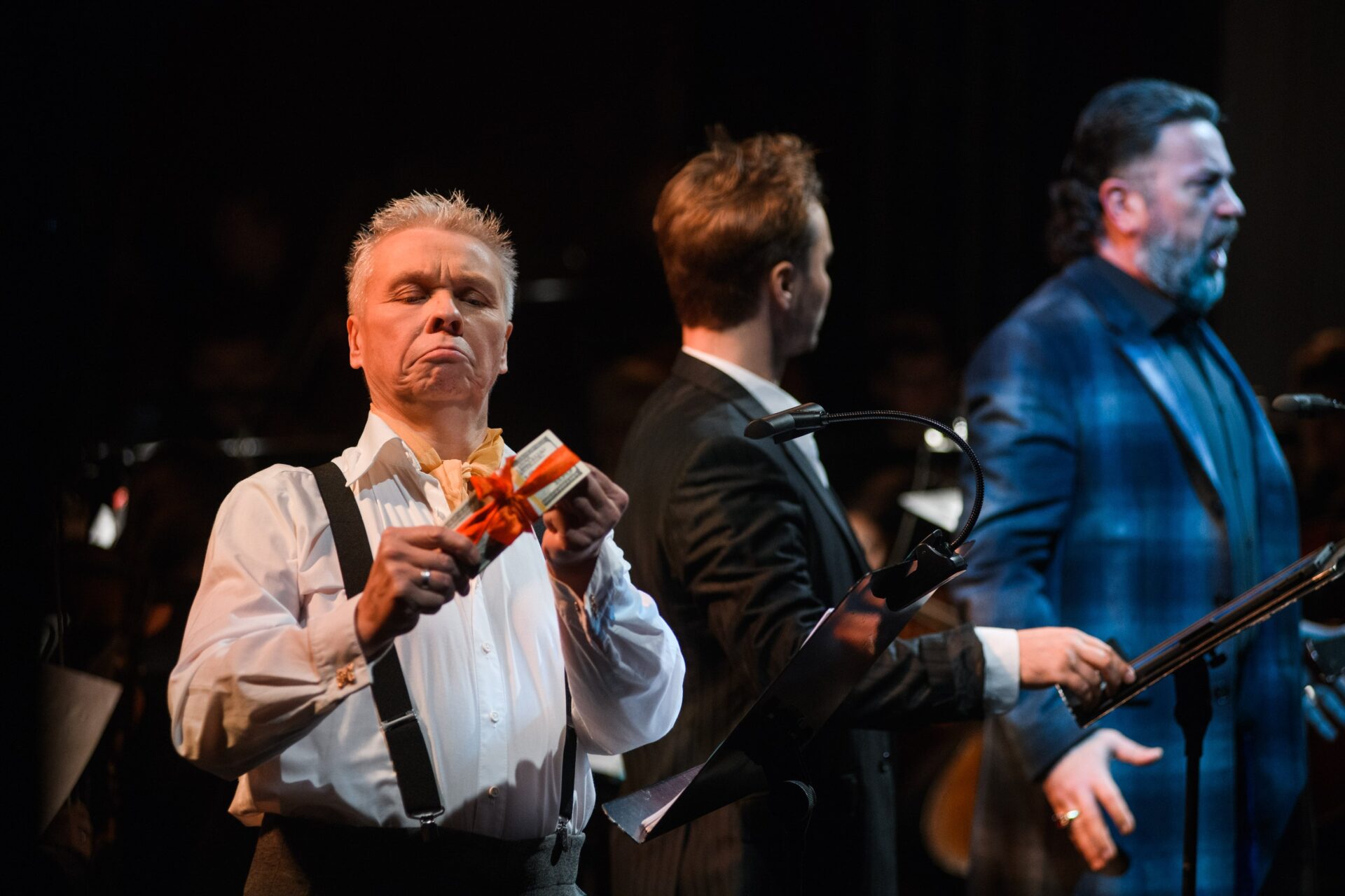 * Cемистейдж (semi-staged production) предполагает полноценное исполнение партитуры (с участием оркестра и солистов), но с ограниченным использованием грима, костюмов, декораций, света или отсутствием некоторых составляющих. В этом смысле формат семистейдж, в последние годы достаточно распространенный в мировой театральной практике, занимает промежуточное положение между обычным спектаклем и концертным исполнением.