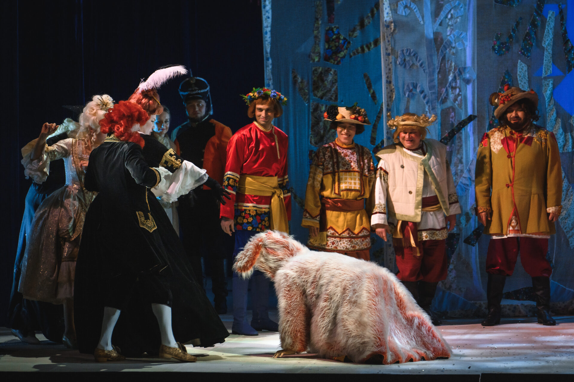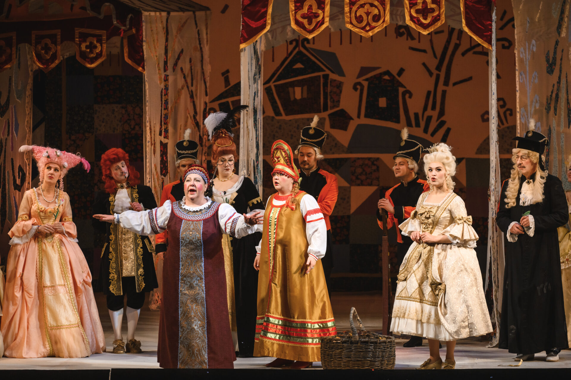 Мачеха с Дочкой вносят в зал корзину с цветами. Присутствующие не верят своим глазам.
